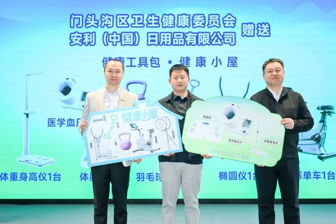 北京市疾控中心、门头沟区卫健委、安利(中国)日用品有限公司分别向门头沟龙泉镇的村民们赠送可视化健康知识展架、医学血压计、运动用品及医疗自测仪等健康工具包,助力农村健康服务阵地建设。
