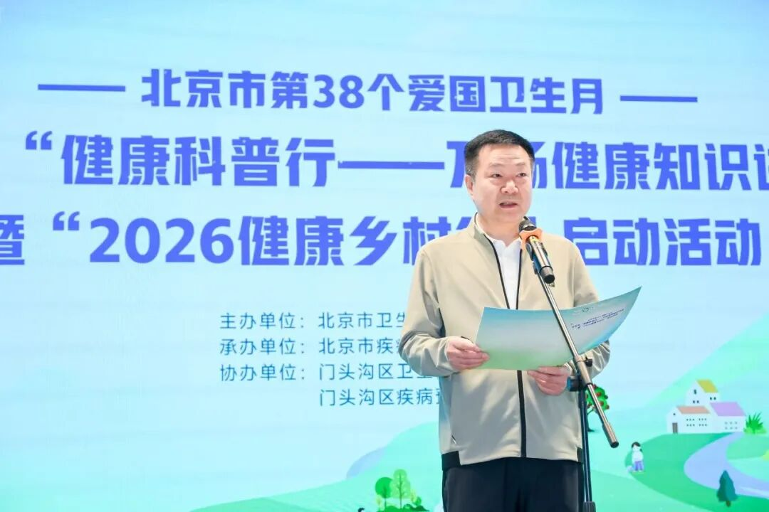 2026年4月15日,正值全国第38个爱国卫生宣传月,北京市“健康科普行—万场健康知识讲座”暨“2026健康乡村行”启动活动在门头沟区龙泉镇琉璃渠村举办。中国健康教育中心主任、党委副书记吴敬、北京市卫生健康委一级巡视员郑晋普、门头沟区政府副区长冯涛、北京市疾控中心党委书记宋卫萍等相关领导参加活动。