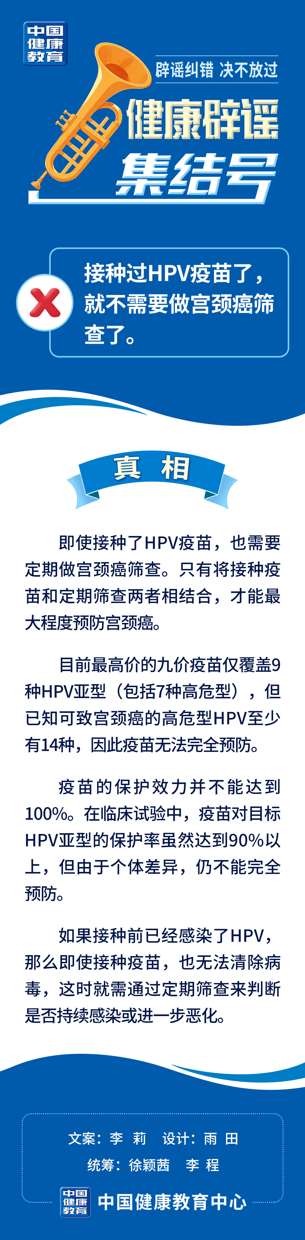 健康辟谣集结号 | 接种过HPV疫苗了,就不需要做宫颈癌筛查了?
