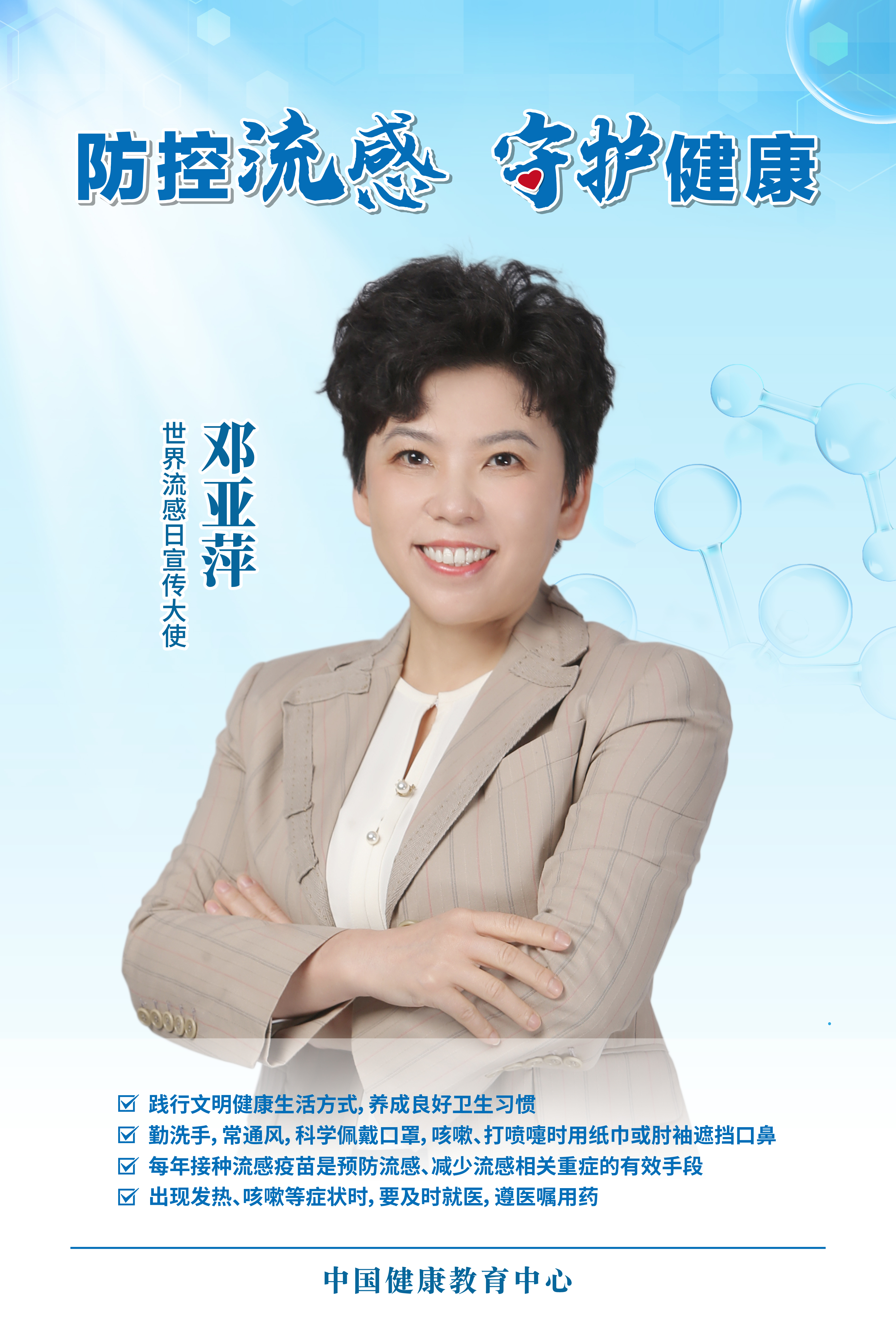 中国健康教育中心整理既往开发的邓亚萍和鞠萍参与的流感防控主题系列宣传海报,再次发布,以普及流感防护的健康知识,倡导健