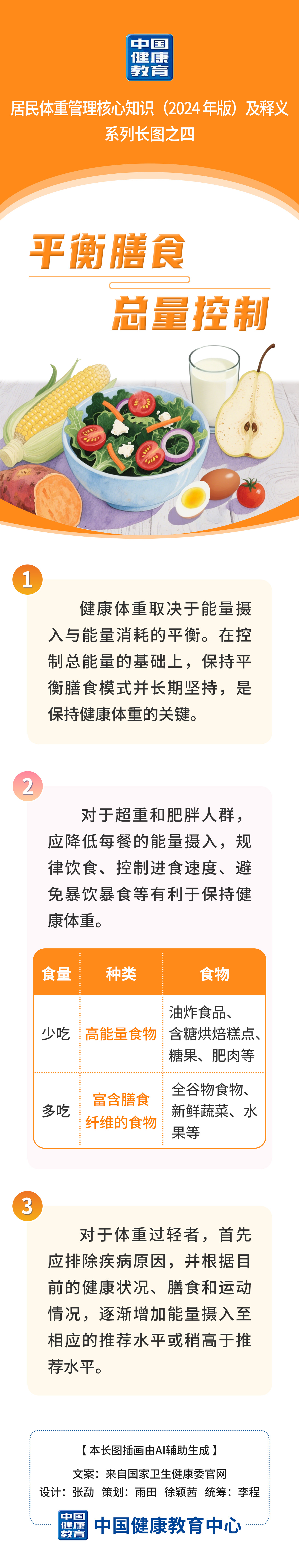 居民体重管理核心知识长图来啦! | 四、平衡膳食 总量控制